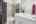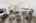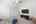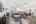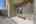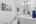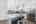The modern kitchen is a chef’s delight, boasting granite countertops, crisp white cabinets, a functional island with a breakfast bar, and stainless steel appliances—including a smart oven.