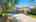 Make the most of outdoor living in your tiered backyard offering impeccable landscaping, low-maintenance rocks and artificial turf grass, a spacious patio, and travertine walkway.