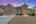 Gorgeous 3-panel panoramic doors lead to the huge outdoor living area offering a fireplace, a remote-controlled shade, a gas stub for a grill, and a ceiling fan.