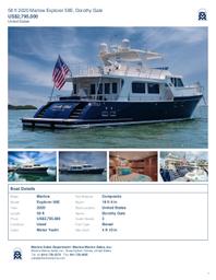 Summer is here, and the water is calling. Introducing Dorothy Gale — a stunning 2020 Marlow Explorer 58E that represents the absolute pinnacle of bluewater cruising. This 58-foot motor yacht is loaded with the most sought-after upgrades available, including twin CAT C-18 engines rated at 1,150 HP each, a Beach Club, an air-conditioned flybridge, Starlink, Naiad stabilizers, and his-and-hers heads in the full-beam master stateroom. Whether you're dreaming of the Great Loop, island hopping, or simply living the summer you deserve — Dorothy Gale is ready to take you there.
