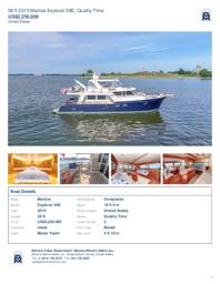 She has arrived, presenting Quality Time, a breathtaking 2015 Marlow Explorer 58E — one of the most celebrated bluewater motoryachts ever crafted. Stretching 58 feet with an expansive 18'6" beam, Quality Time is the perfect expression of elegance, performance, and seaworthiness.